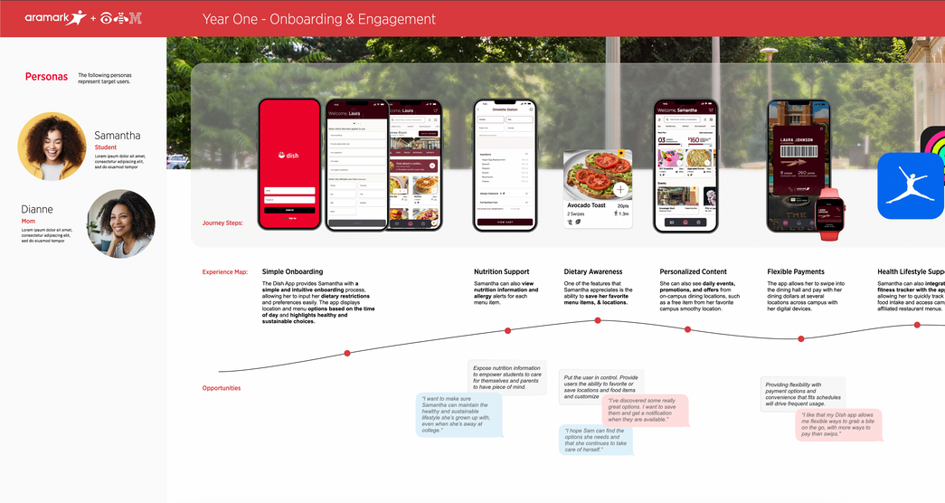 Aramark food services is entering a new era of Collegiate Hospitality. They support over 200+ universities nationwide (in addition to stadiums and other large institutions). Looking to modernize its digital experience, Aramark needs a dining hall app to support students that can be skinned for any of it's clients. I was a part of the team imagining what that app experience could look and feel like.